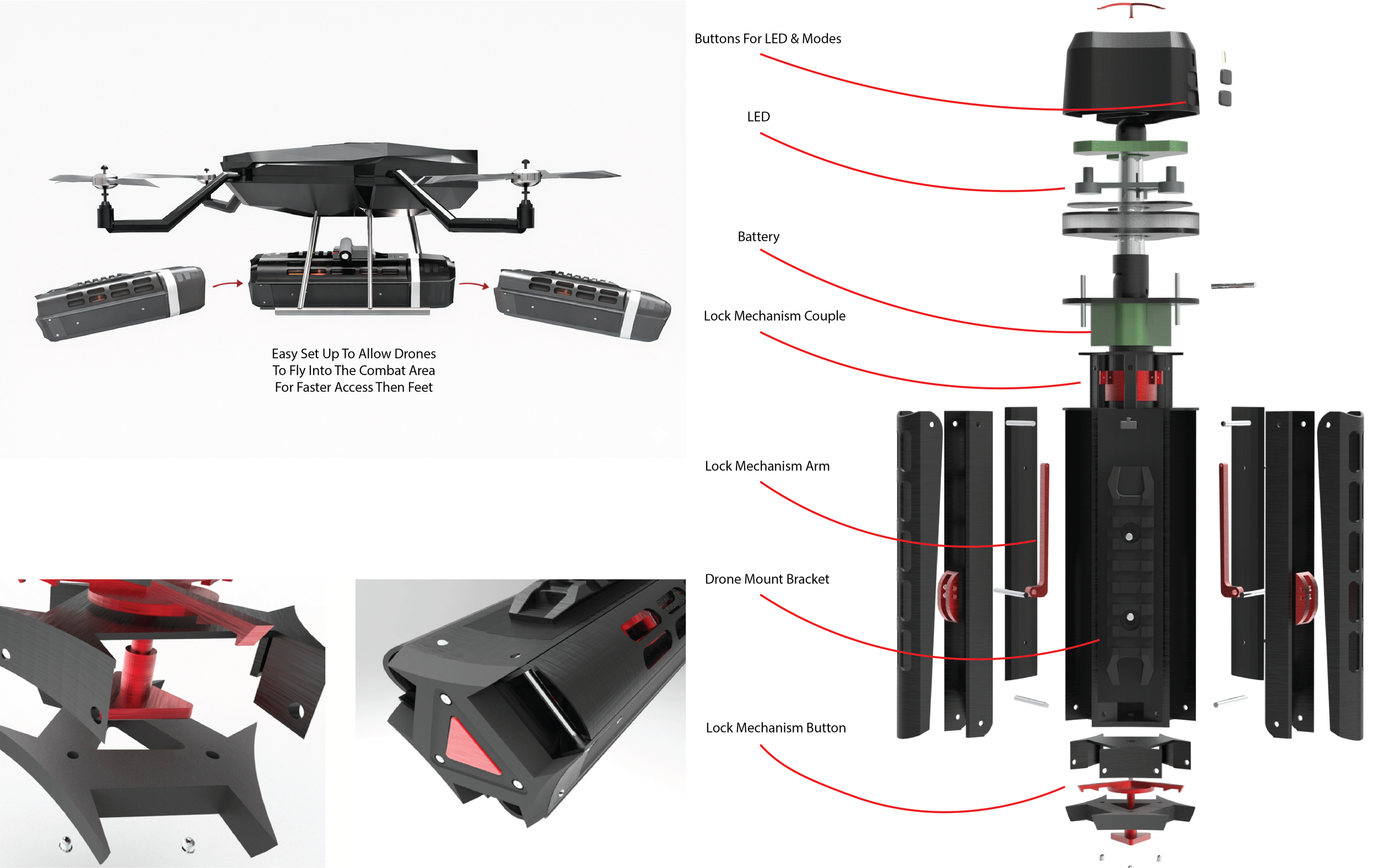 The design focuses on a modular medical lighting system intended for military use, with the ability to be easily transported and deployed via drone.