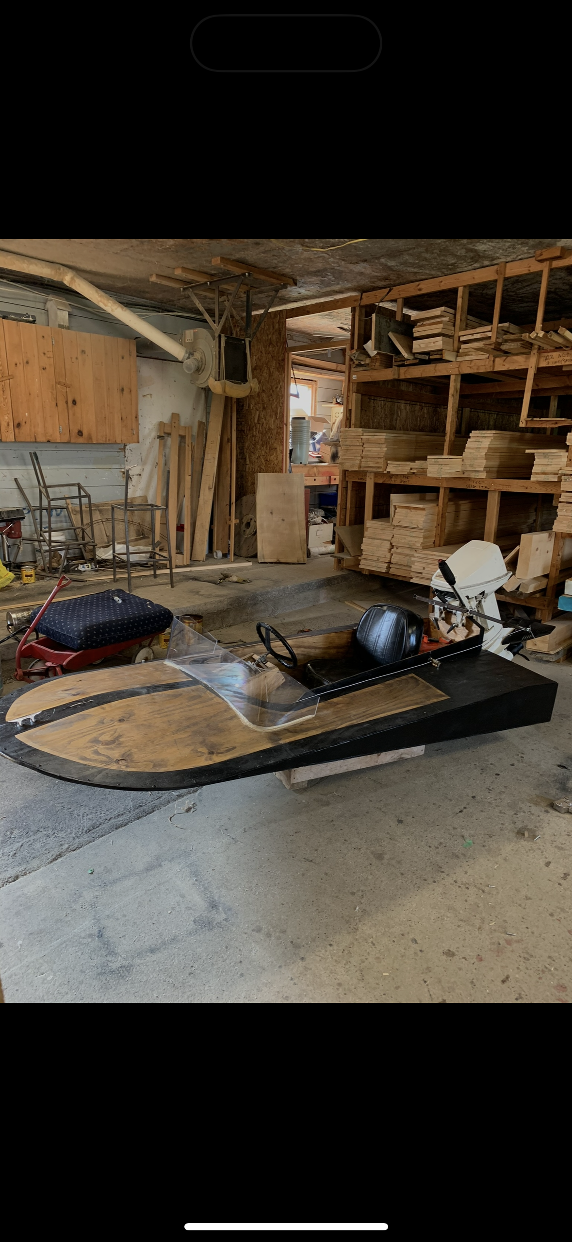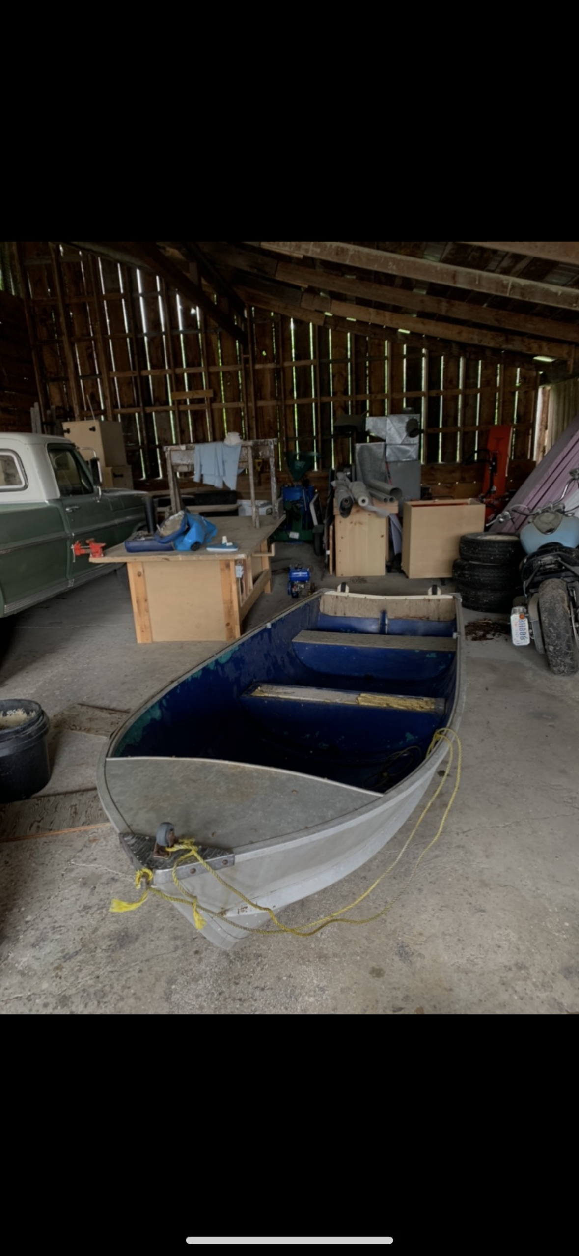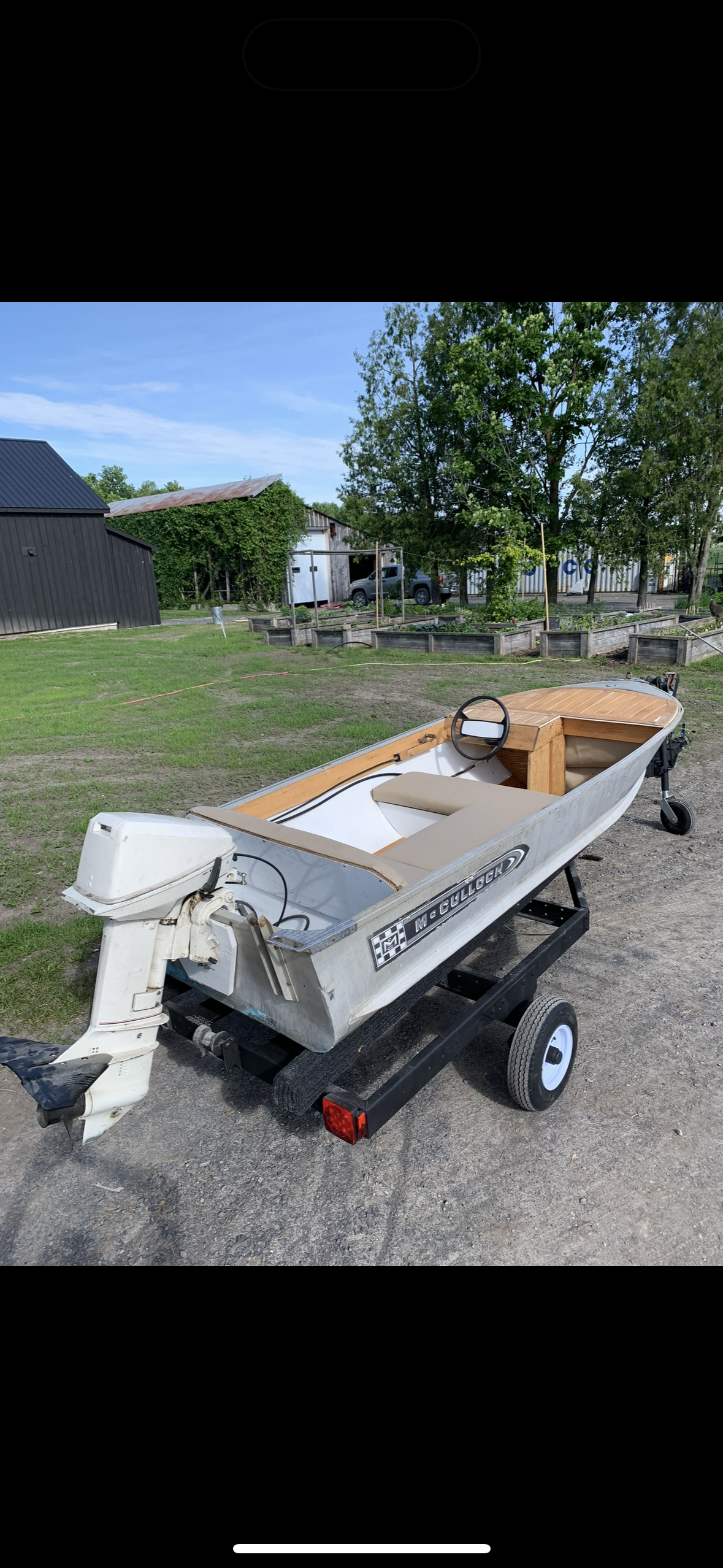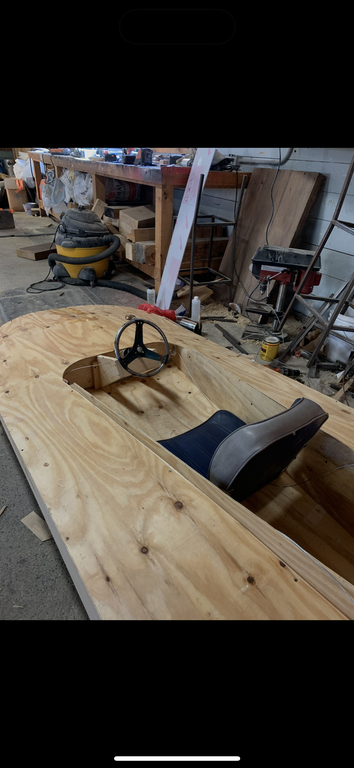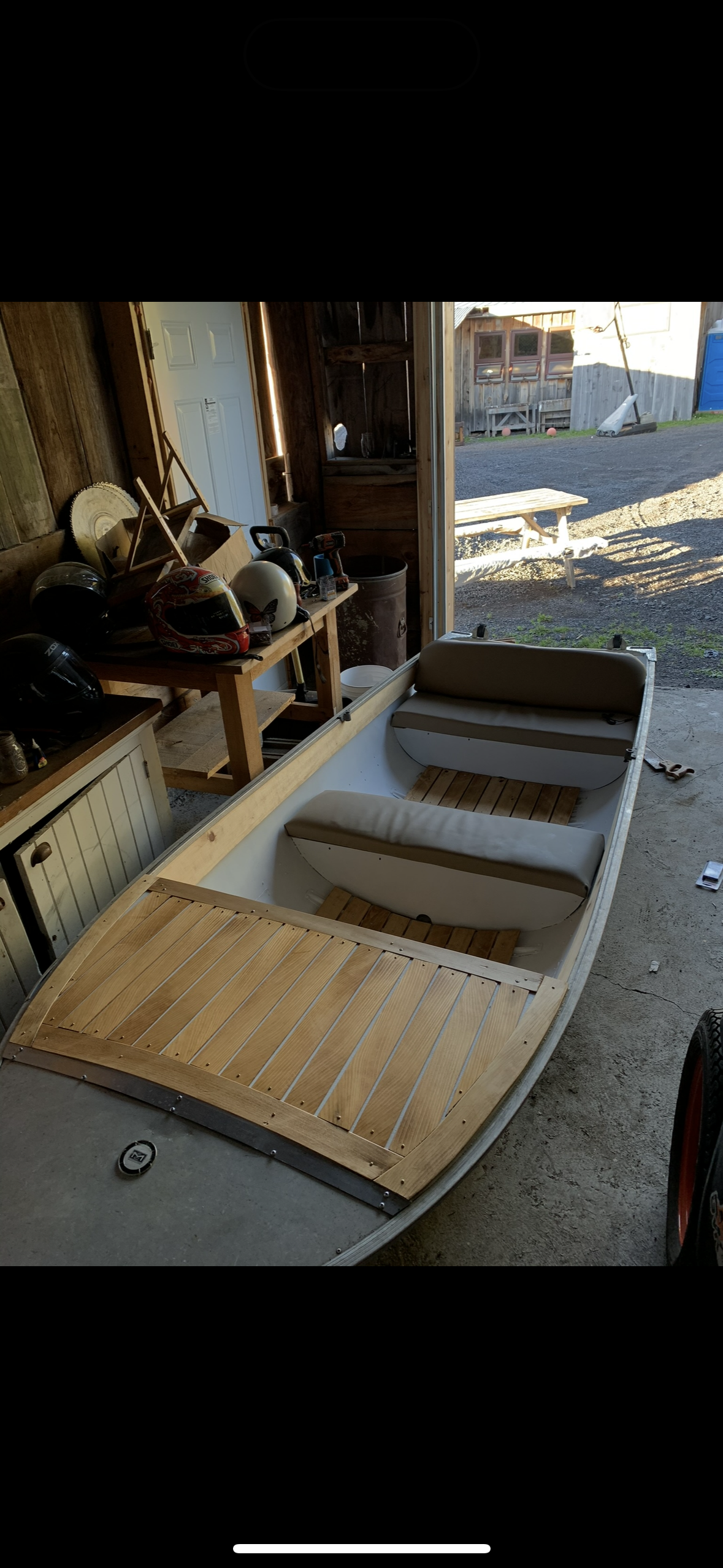 This boat was rebuilt from a damaged 14-foot aluminum fishing hull into a compact, modern boat designed to accommodate five passengers. The rebuild included the integration of a front-mounted steering wheel with throttle control, transforming the original frame into a functional and contemporary small craft.