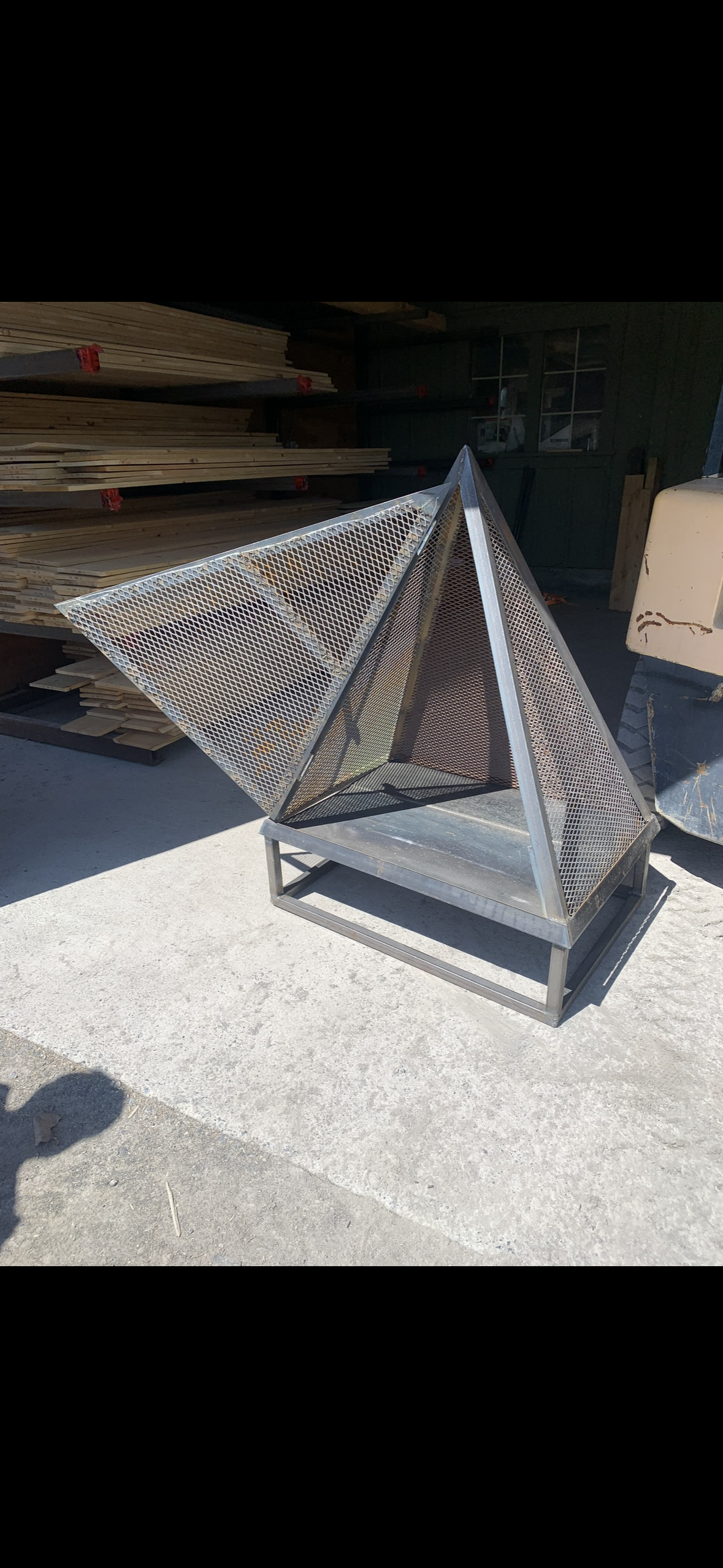 A series of steel fire pits produced for ten different clients, all based on the same core design with customized dimensions to suit each space.